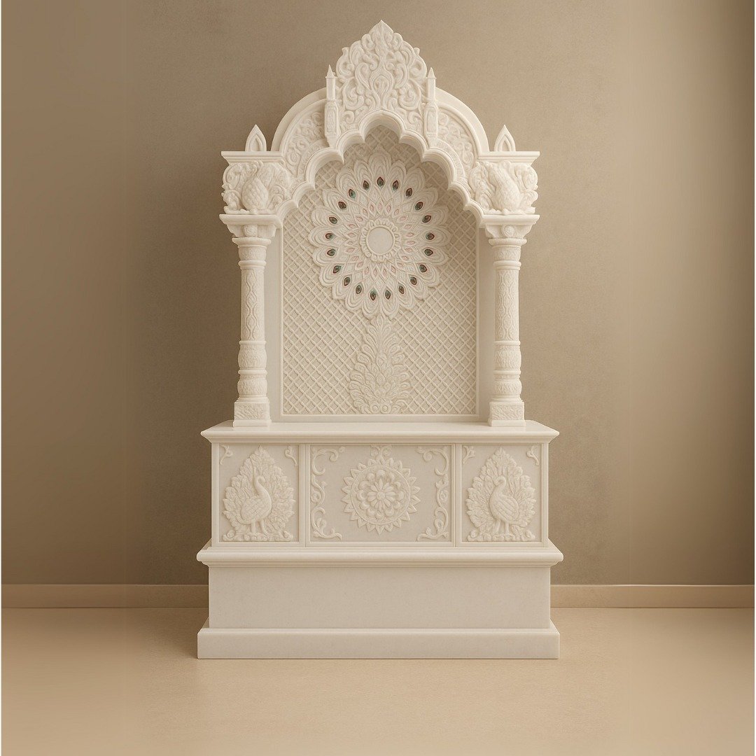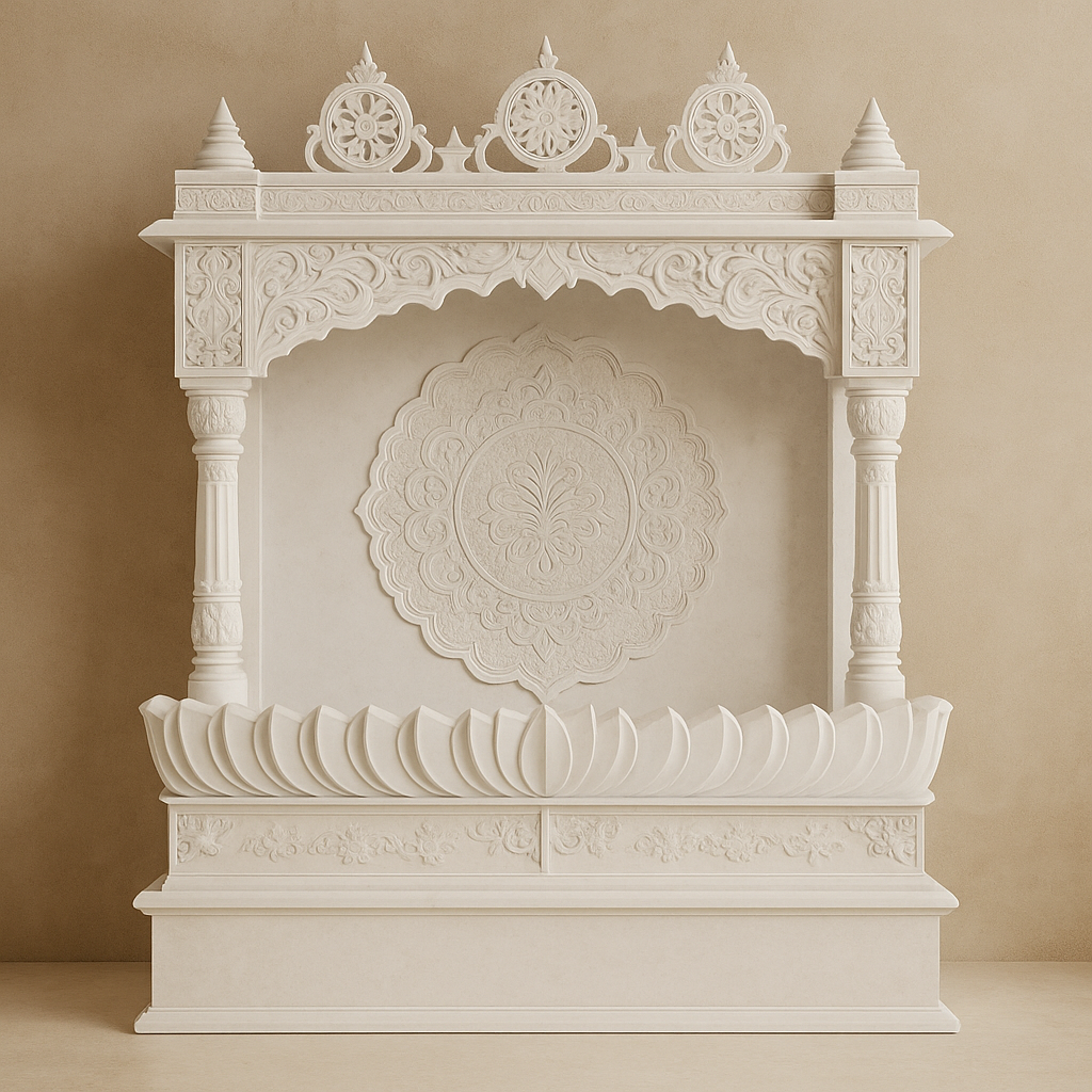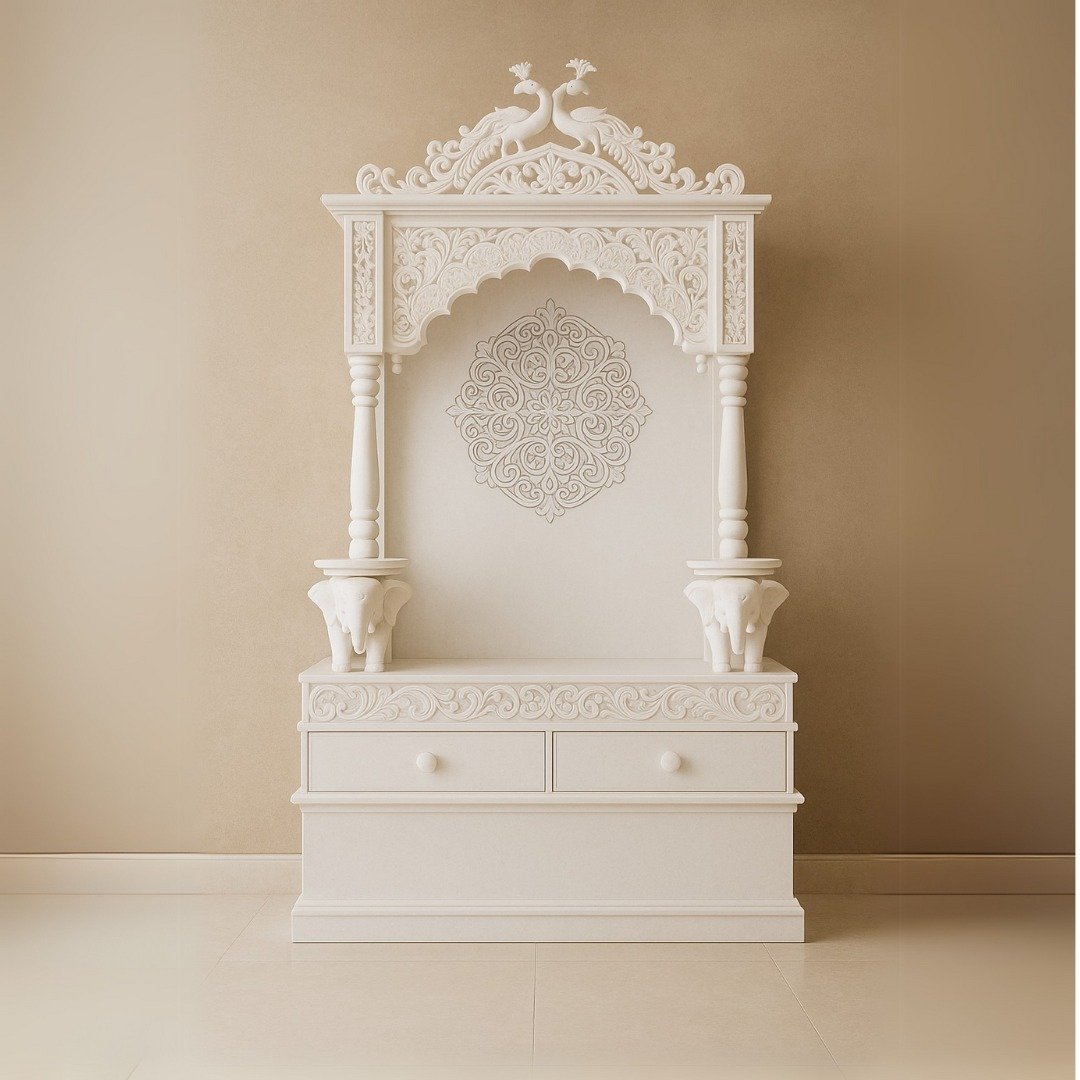 The collection also offers a starting point for more personal touches. Adjusting the measurements, for example, guarantees a precise fit in any nook or alcove, enabling a particular part of the home to be transformed into a beautiful puja space. Nuanced modifications to the design can add emphasis to a cherished deity or symbol. There are three ways to personalise a a particular design.